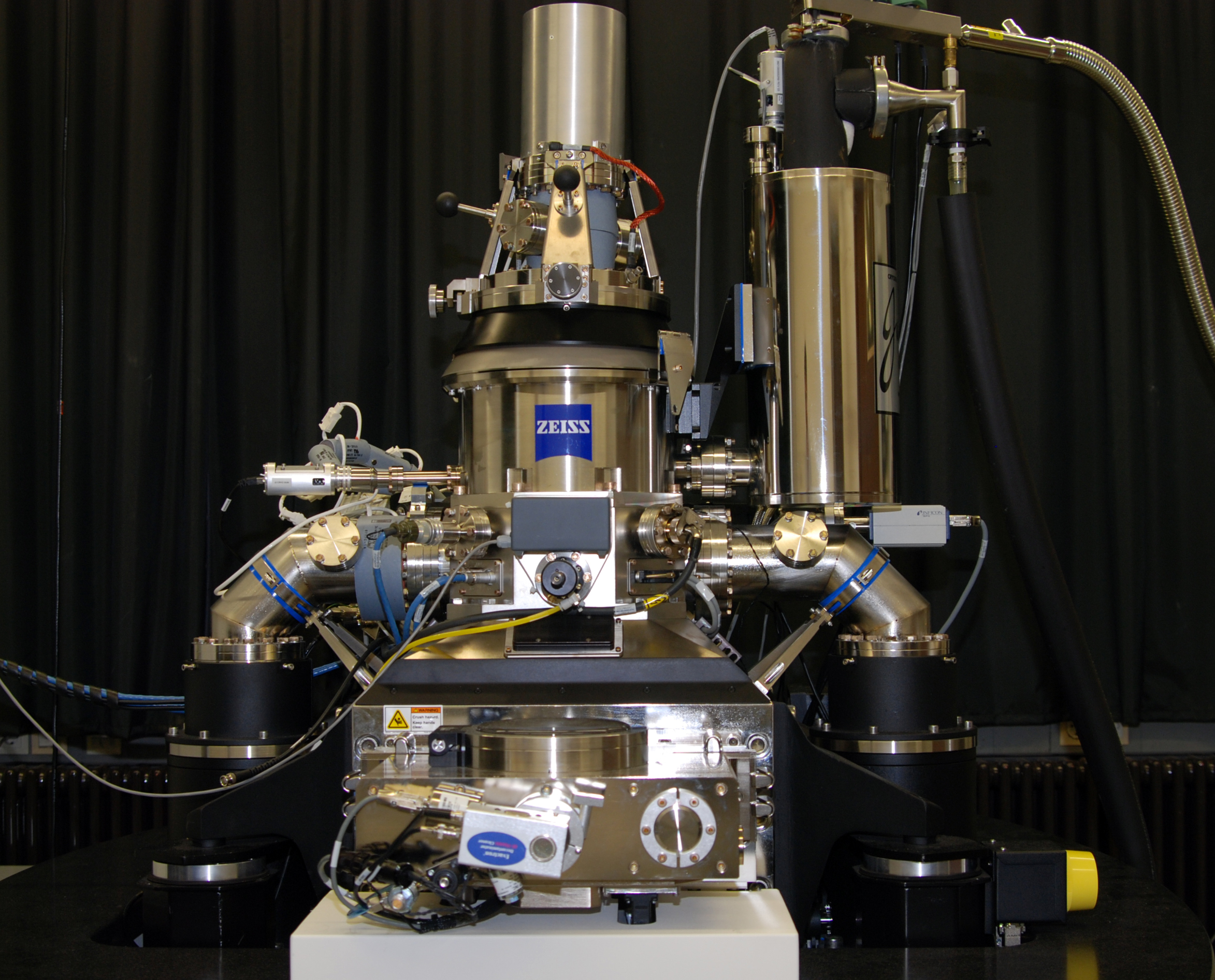 Mit dem Helium-Ionen-Mikroskop lassen sich auch verborgene Schichten von Materialien abbilden. Foto: Universität Bielefeld Zu den weiteren Höhepunkten der physikalischen Forschung in Bielefeld gehört die numerische Simulation von Quantenfeldern bei hoher Temperatur und Dichte, um die Eigenschaften sogenannter Quark-Gluon-Plasmen zu berechnen. Bei diesen Plasmen handelt es sich um einen fünften Aggregatzustand, nachgewiesen an der Großforschungseinrichtung CERN und dem Brookhaven National Lab.