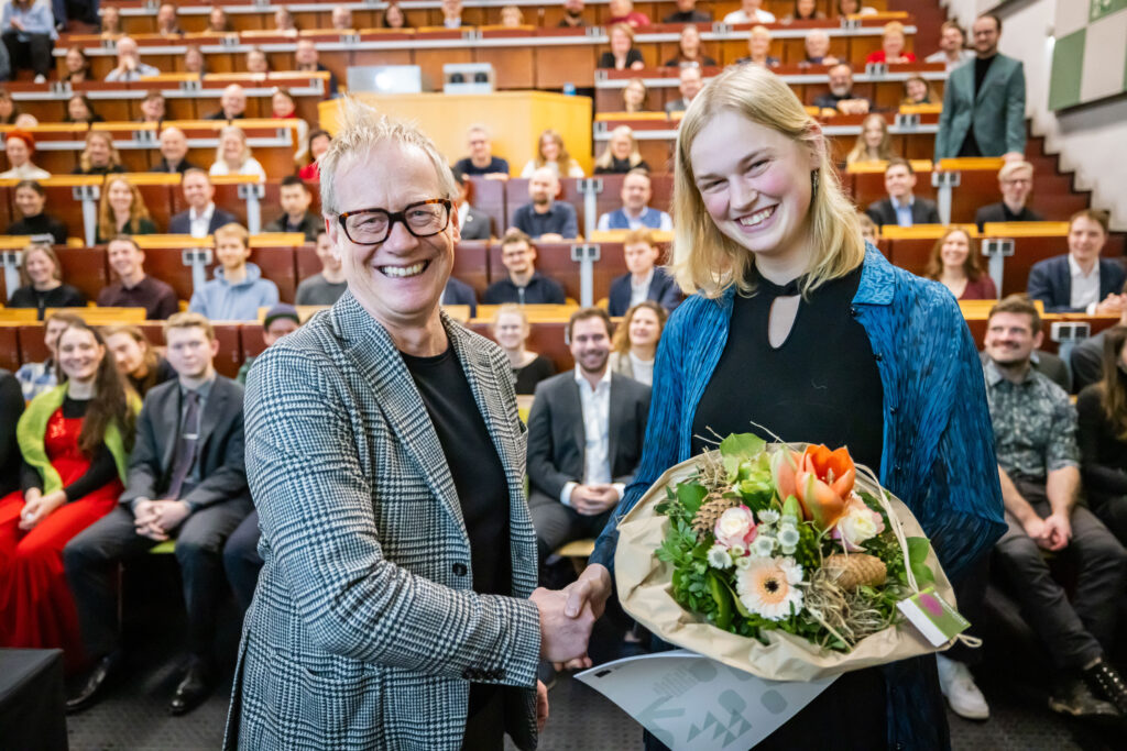 Für ihre Bachelorarbeit aus dem Fach Biologie erhielt Janina Niemeyer einen Nachhaltigkeitspreis. Sie erforschte, wie sich Landwirtschaft so anpassen kann, dass sie besser mit dem Klimawandel klarkommt. Außerdem wurde Johanna Weidelt für ihre Masterarbeit in der Physik ausgezeichnet. Sie untersuchte, wie man Brennstoffzellen so verbessern kann, dass sie nachhaltiger sind.