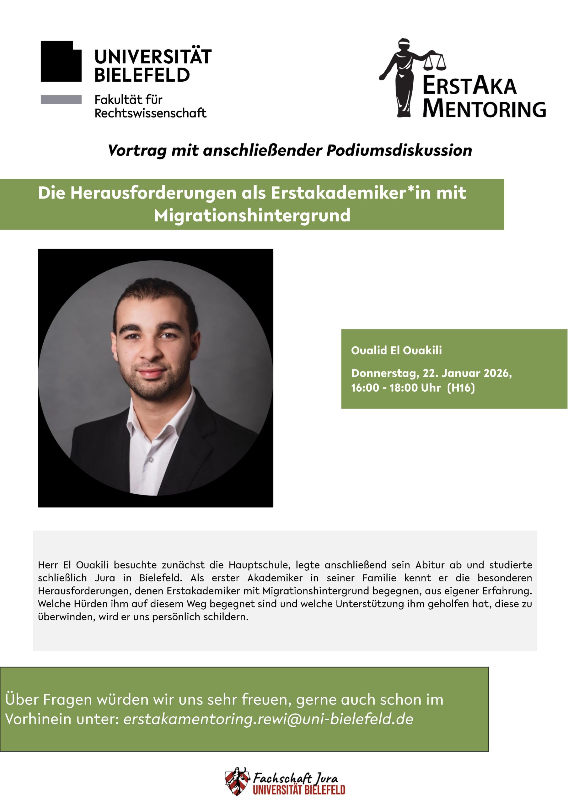 Herr El Ouakili besuchte zunächst die Hauptschule, legte anschließend sein Abitur ab und studierte schließlich Jura in Bielefeld. Als erster Akademiker in seiner Familie kennt er die besonderen Herausforderungen, denen […]