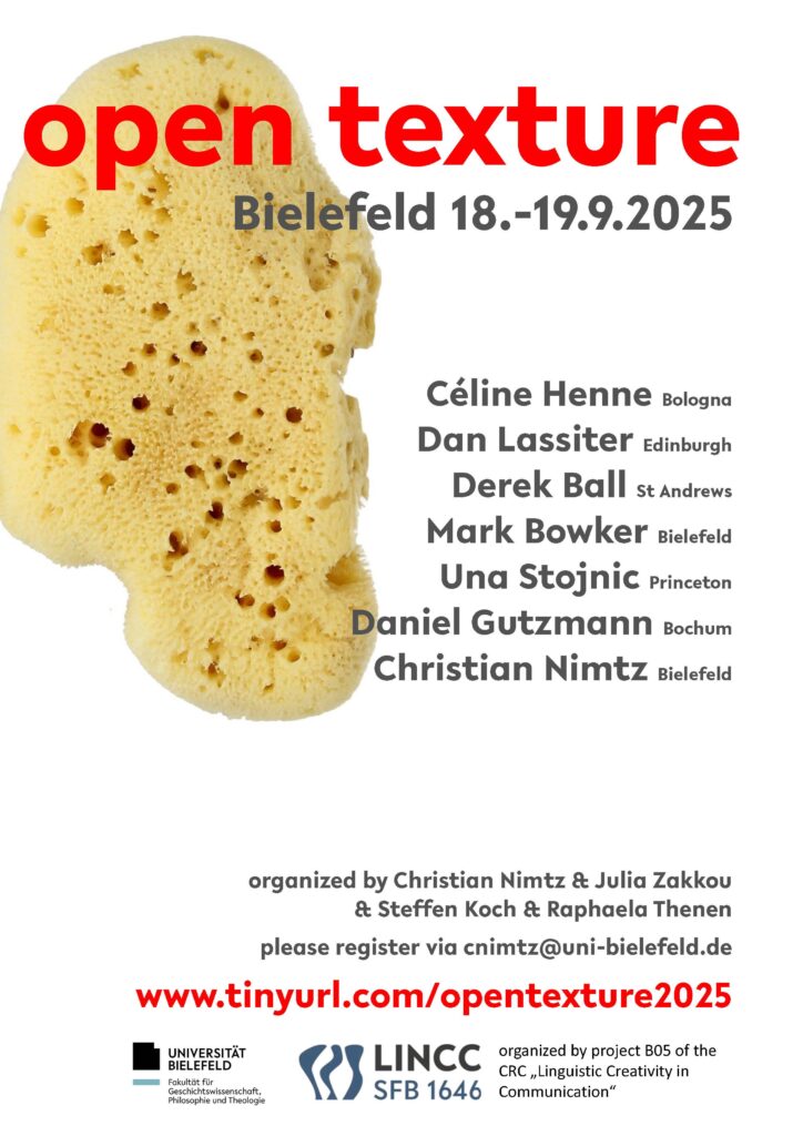 Talks will be given by PI Prof. Dr. Christian Nimtz (B05) and Dr. Mark Bowker (both Department of Philosophy, Bielefeld University), as well as the following invited speakers: