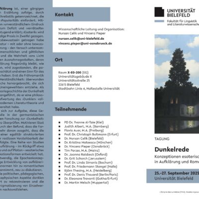 Tagung: Dunkelrede. Konzeptionen esoterischen Schreibens in Aufklärung und Romantik