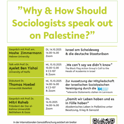 In der internationalen Genozidforschung existiert ein breiter Konsens, dass in Gaza ein Völkermord an Palästinenser:innen geschieht. Dies befördert die Frage nach Handlungsmöglichkeiten und der Verantwortung von Wissenschaft insgesamt. Angeregt durch […]