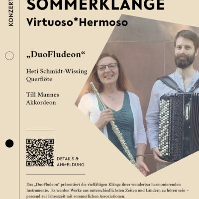 Heti Schmidt-Wissing (Querflöte) und Till Mannes (Akkordeon) haben sich 2022 an der Musik und Kunstschule Bielefeld kennengelernt und entdecken seitdem gemeinsam die vielfältigen Klänge ihrer wunderbar harmonierenden Instrumente. Das “DuoFludeon“ […]
